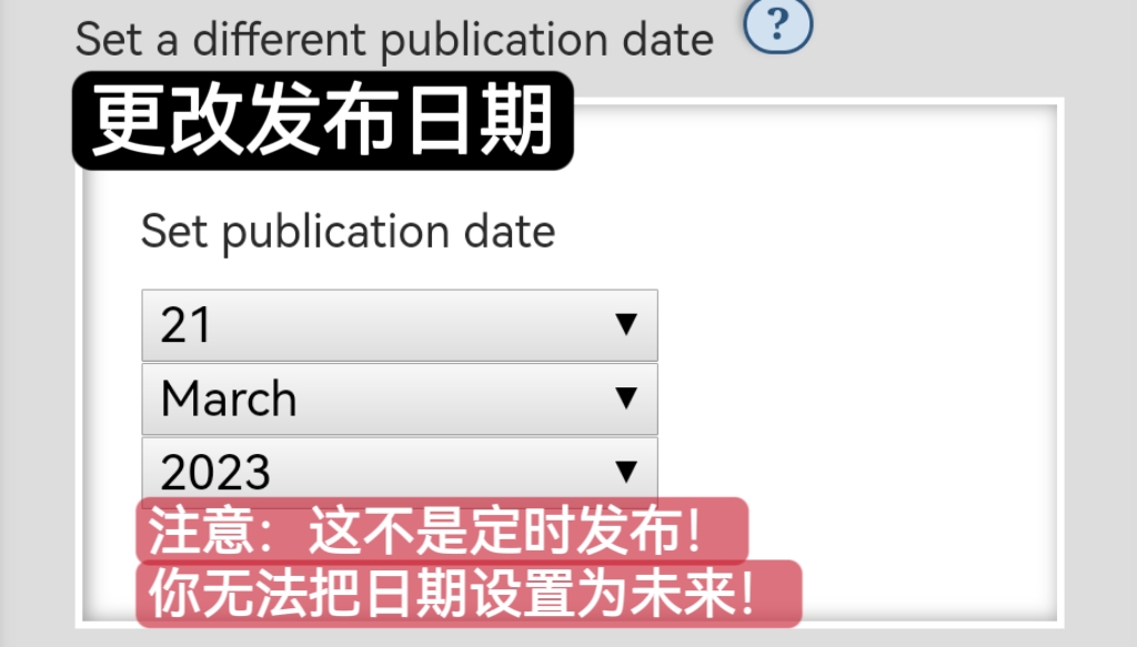 **注意：并不是定时发布！日期无法超过你选用时区的当天！**