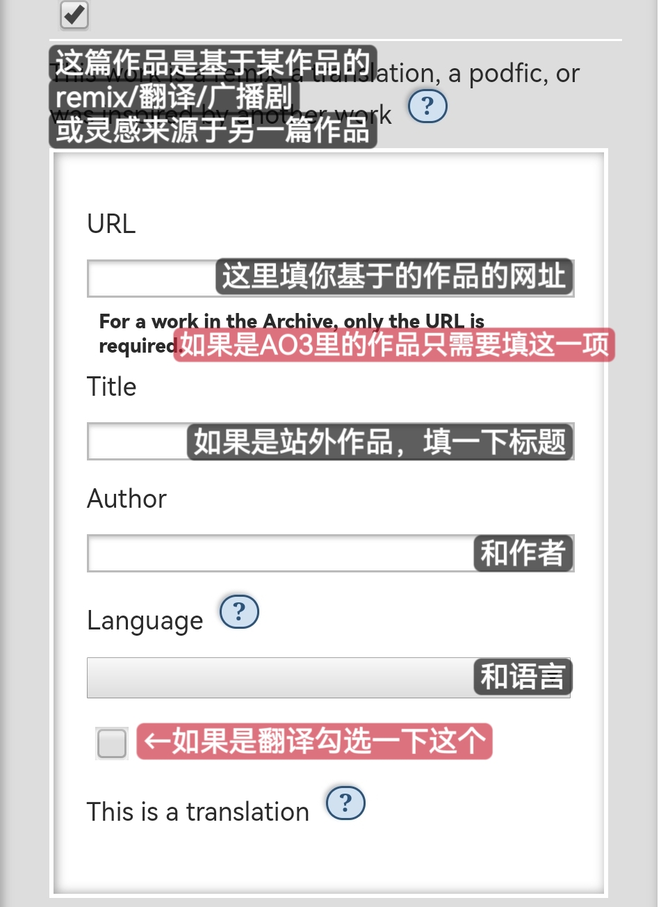 **如果原文也在AO3，发翻译文时请勾选这个，是对原作者的尊重，也更方便两篇文关联！**