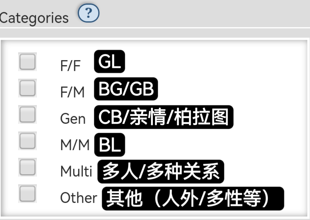 1. **Categories：**&#x7C7B;别，作品配对属性。