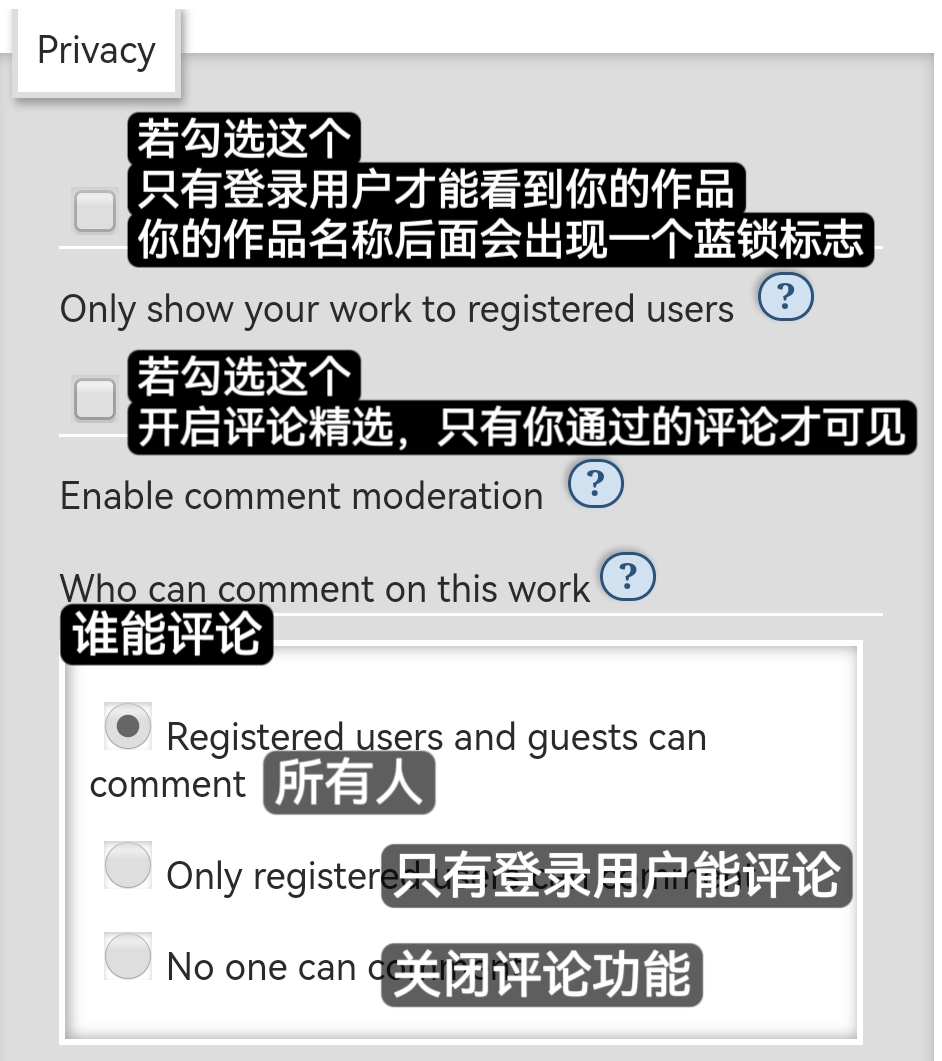 18. **Who can comment on this work：**&#x8BC4;论权限；控制谁能评论你的作品。