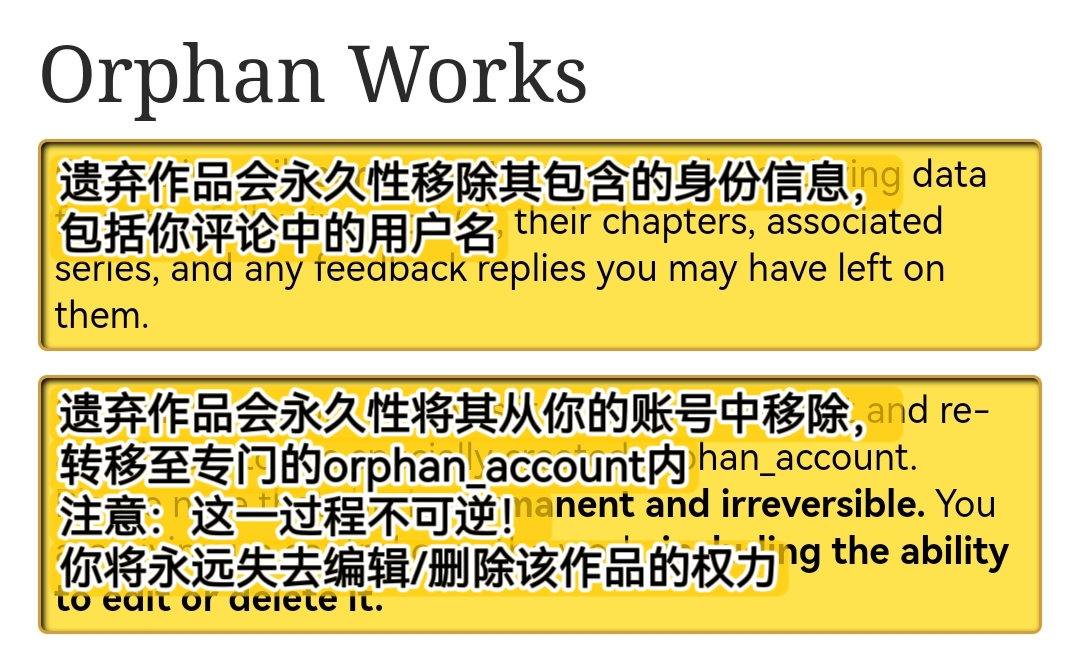 在使用遗弃作品功能后，作品将会从你的账号名下移除，转移到专门的orphan\_account之下。遗弃作品意味着你放弃对这个作品的一切关联和权力，你将：