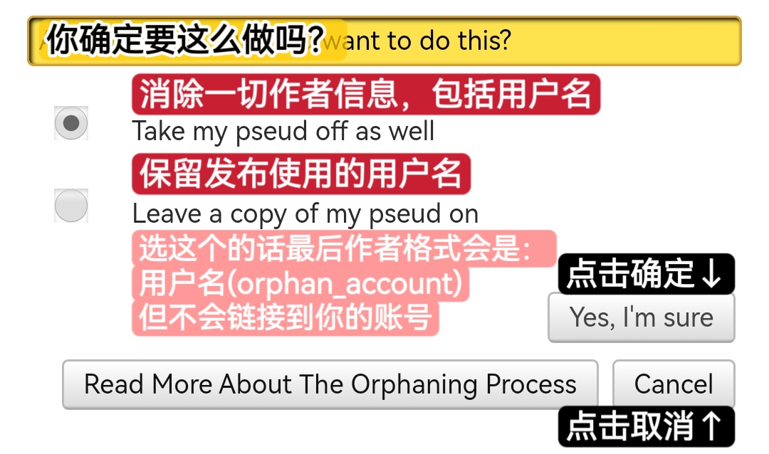2. 选择是否要保留用户名，然后点击`Yes, I'm sure`。